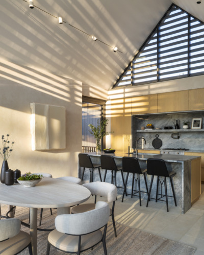 Concludes Sherer: “Phil and Eliane knocked it out of the park with the concept and created an incredible structure. In a word, I would say our favorite element of this pool house is its ‘balance.’ There is an incredible balance, albeit asymmetrical, to the proportions of the structure, the ‘three gables.’ The rooms are perfectly balanced in their scale and size; there is a perfect balance of flow from inside and outside spaces; and there is a balance between the structure being a self-standing ‘guest house’ as much as it is a ‘pool house.’ It has the perfect balance that hopefully the clients and their guests will love and appreciate for years to come!”